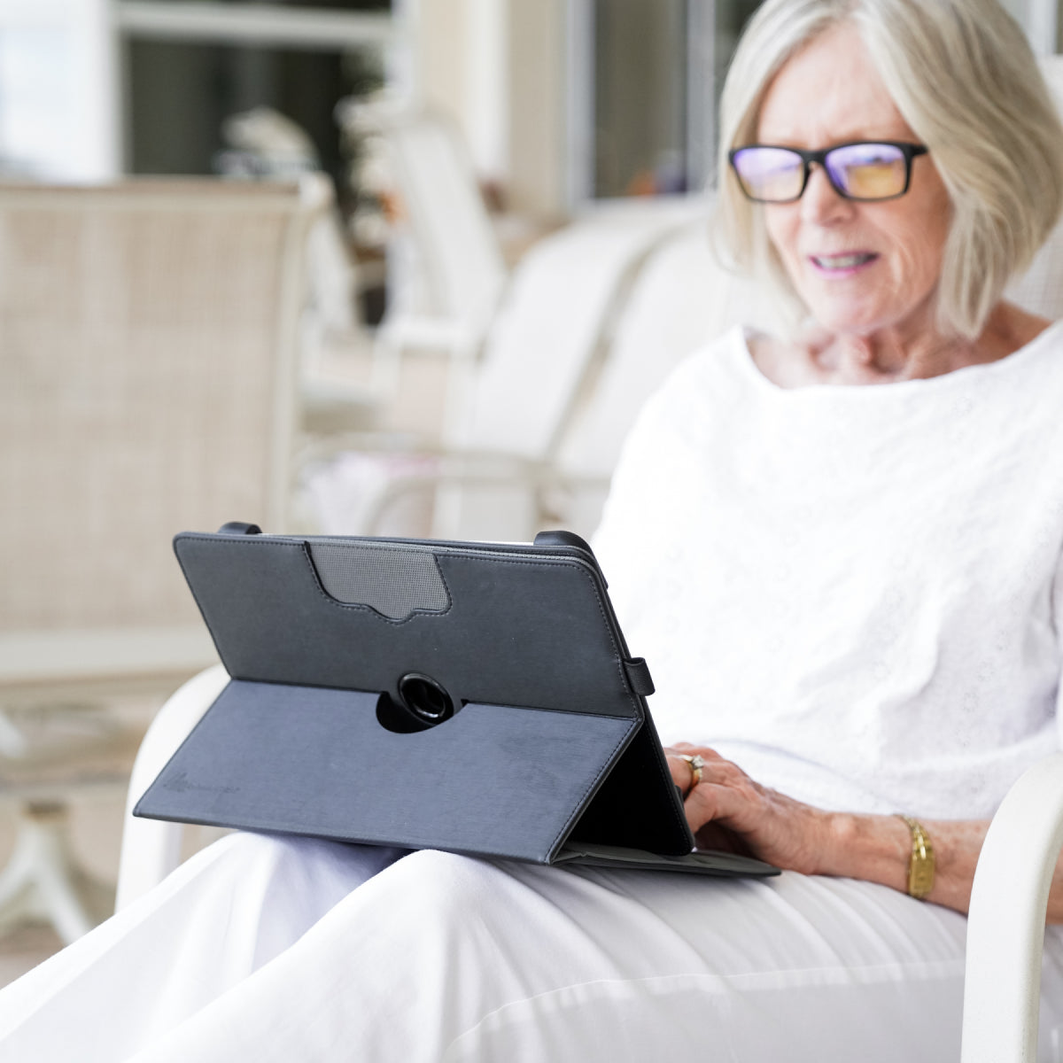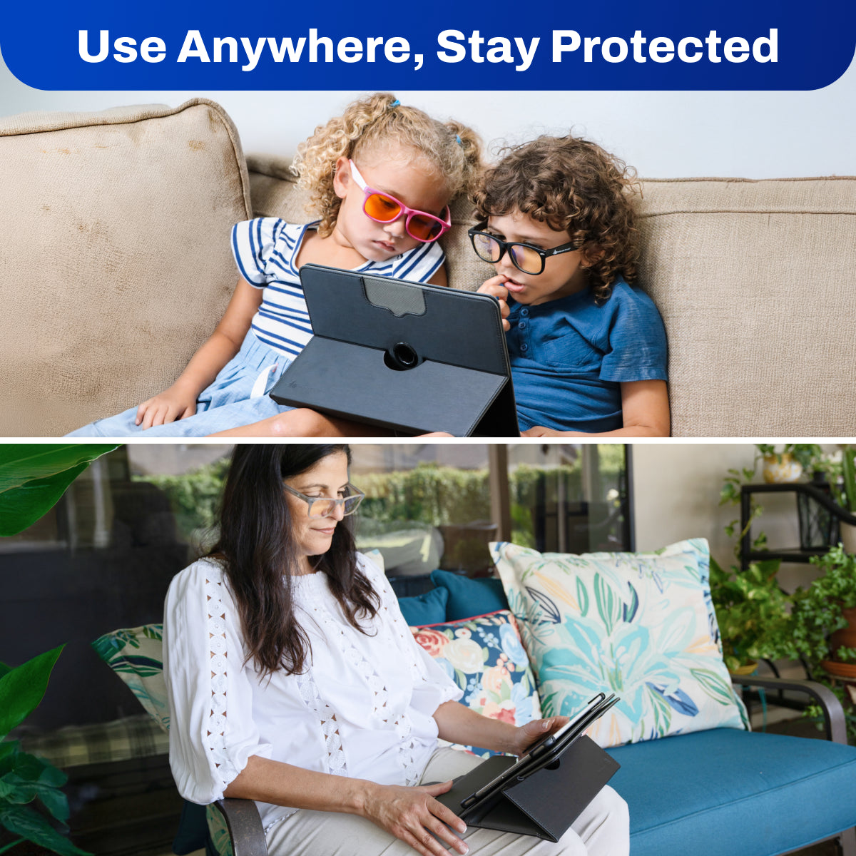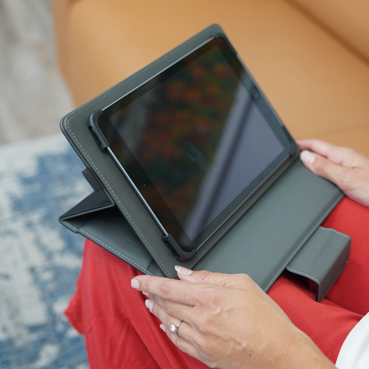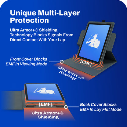 The DefenderShield Tablet / iPad EMF Radiation Case uses DefenderShield’s newly developed Ultra Armor+® Shielding Technology in the front and rotating back cover to help protect your body from up to 90 GHz of EMF frequencies emitting from your tablet. Just make sure the front or rotating back cover of the tablet case is between your lap and your tablet or iPad.